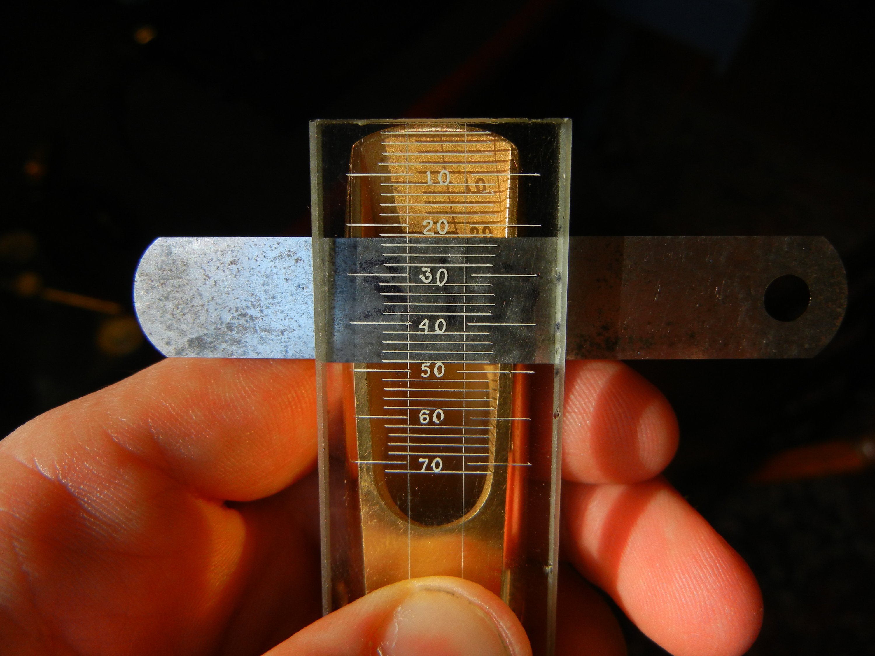 Mouthpiece facings are measured using a flat surface (usually a glass plate) with markings etched in it. This is held flat against the table, and feeler gauges of different thicknesses are slid down the facing until they won’t go any farther. In this way, the distance of the varying thicknesses can be plotted on a curve- the facing curve. More feeler guages = more precision. What particular gauges to use, how many, and what thicknesses are up to the individual doing the facing.