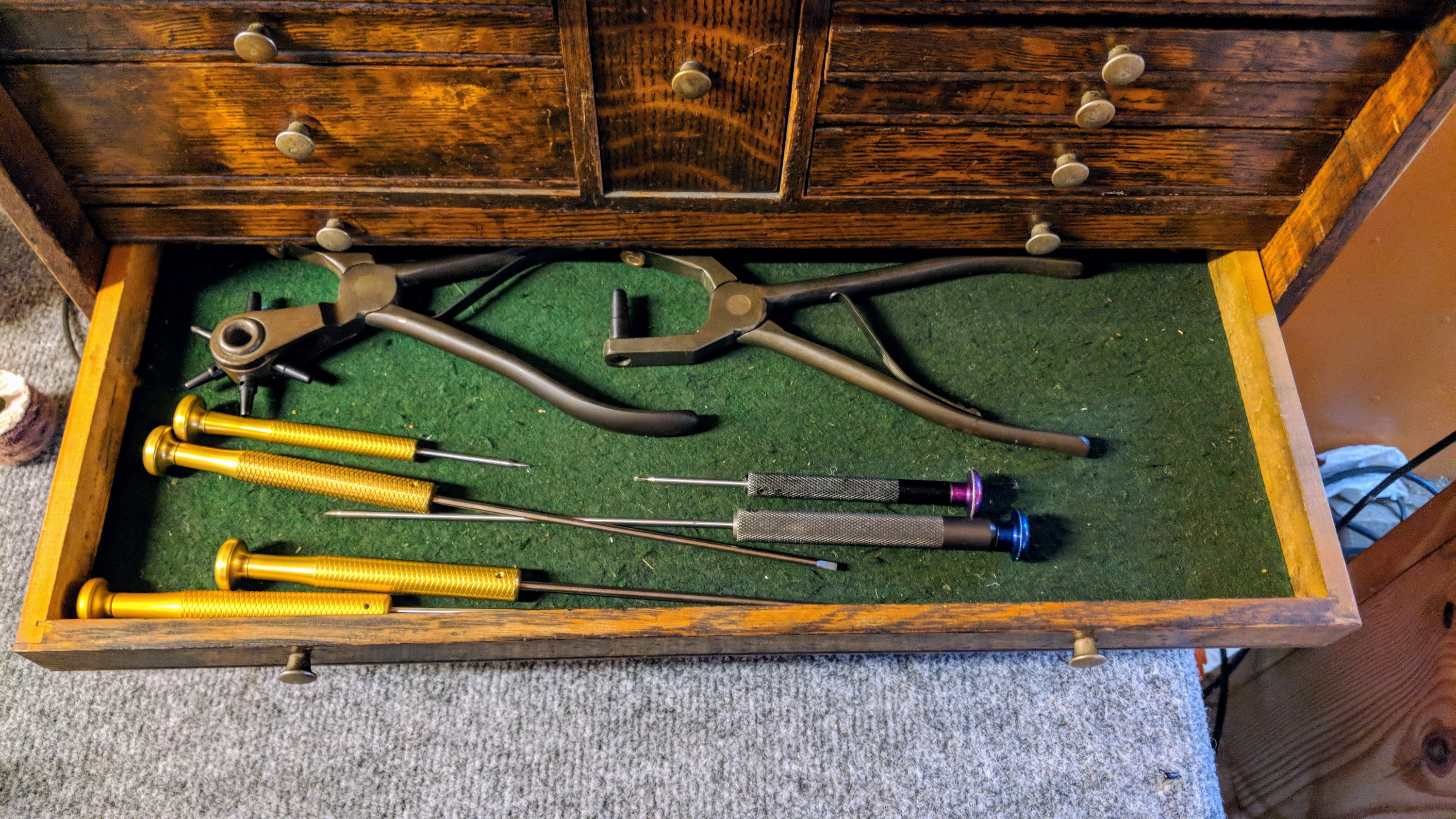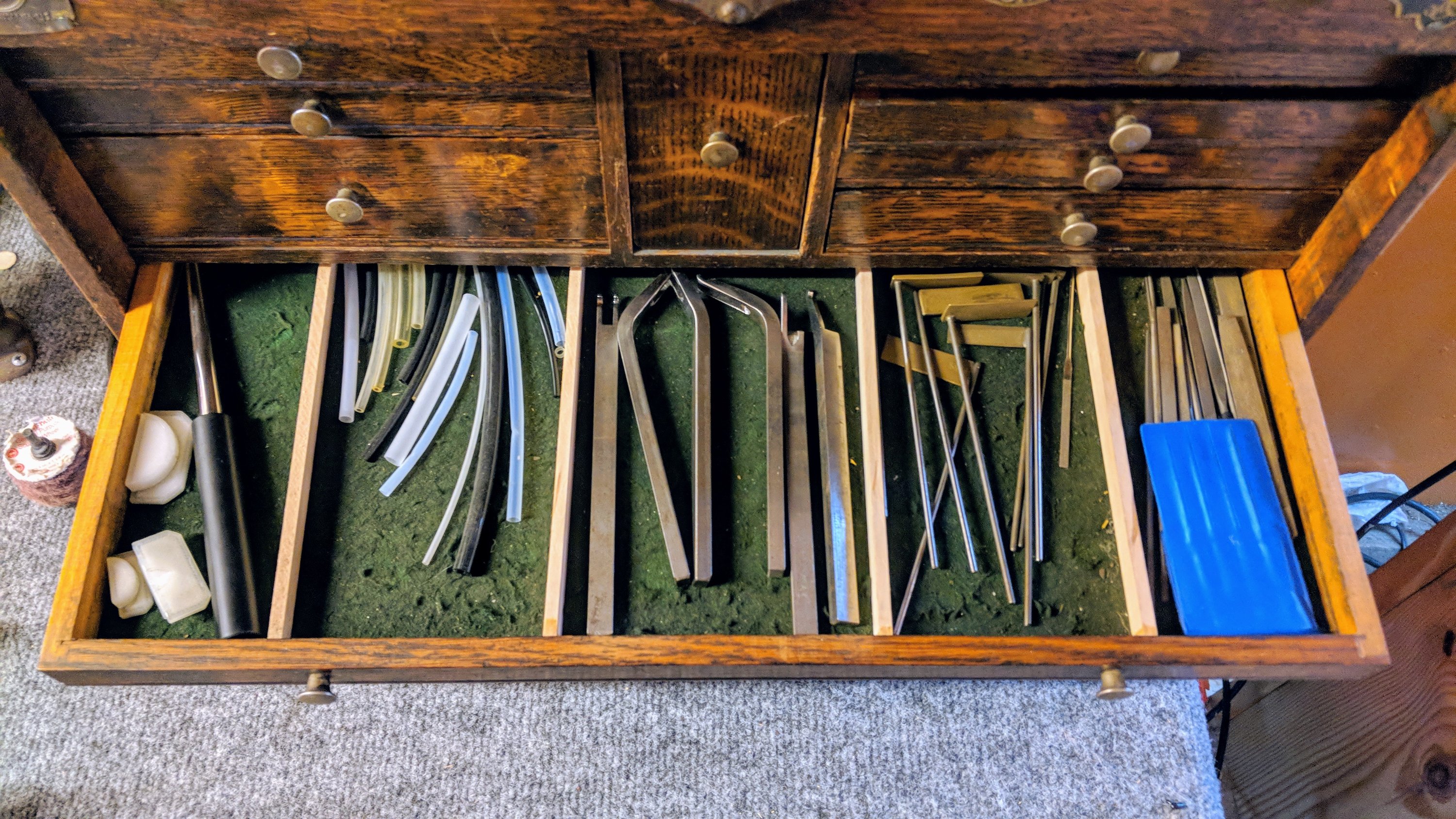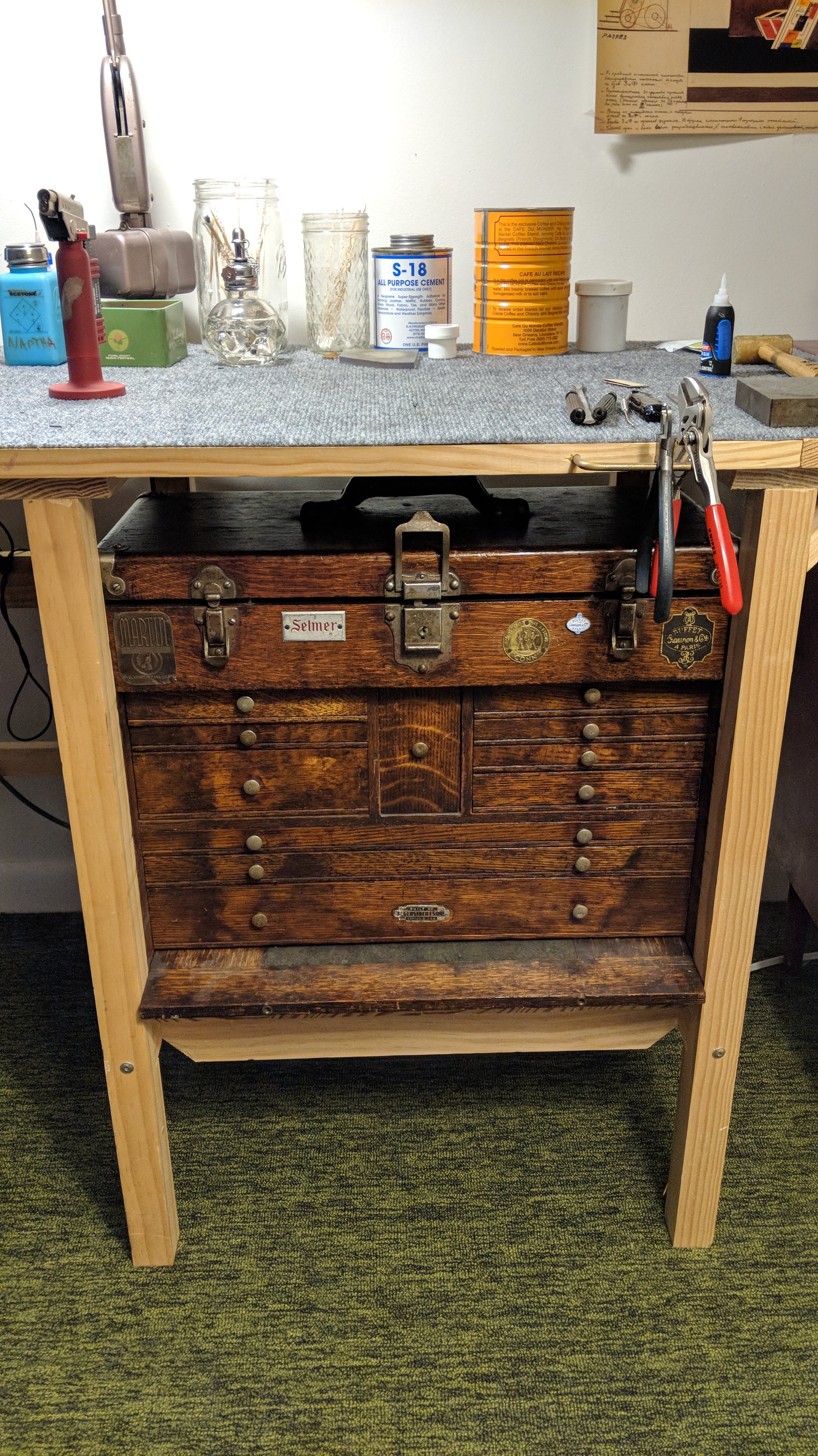 The tool chest in its spot in the at-home bench.