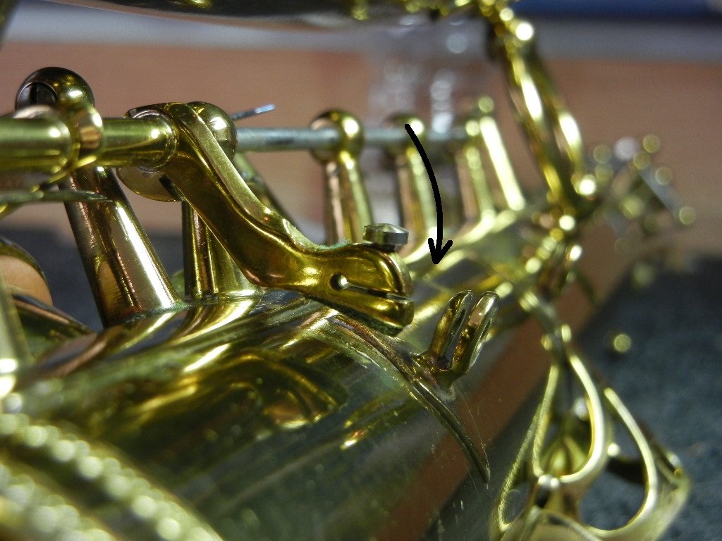Imagine what the following configurations will do to the action of a upper or lower stack key foot as the player releases pressure on the key, the key opens and the tension of the spring brings the key foot to rest and the key foot comes to rest on the body of the saxophone: