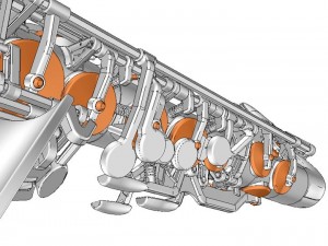 The idea of years of use in particular is an area where theA1S has some major drawbacks. For instance, with a traditionally built saxophone, there are ways to adjust the relationships between the keys so that they act how they should– what we in the repair business creatively call the adjustments. These adjustments are necessary because we have 10 fingers and are actuating 23 or so keys on a saxophone– therefore certain keys must act together at certain times, and they must seal perfectly airtight with minimal pressure and at exactly the same time. Due to variations in manufacture, thickness of pads installed and other factors, these adjustments must be made individual to each horn by a qualified repairman as the horn is put into playing shape. Without proper adjustments, a horn simply won’t play. Interestingly, this concept is also illuminated with the shortcomings of the 3D-printed flute I posted/ranted about a little while back.