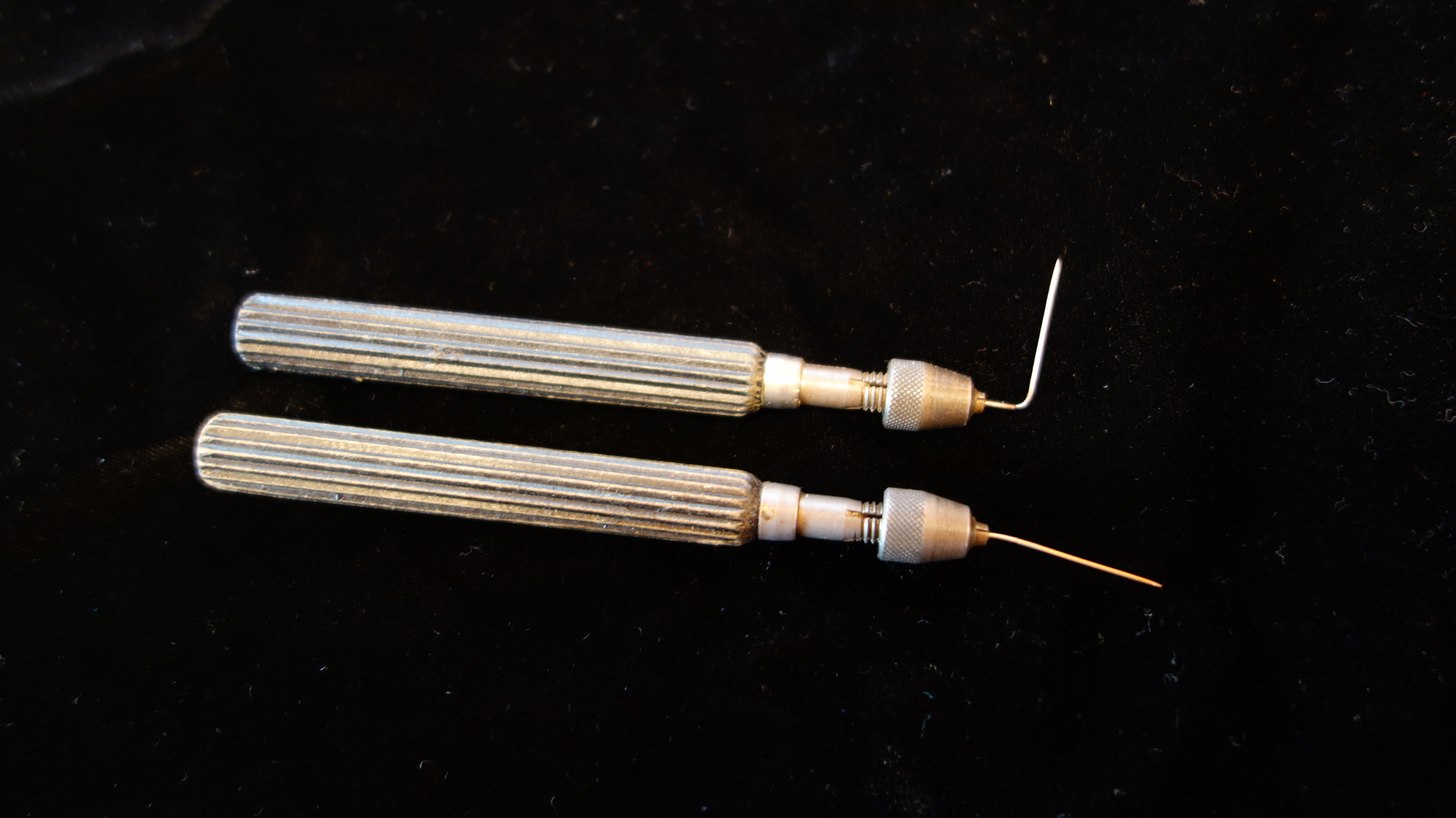 Pin vise A small handheld tool that securely holds a pin or needle. Used for holding tiny pieces of adjustment material or for moving/holding pads. For pins, you can use small needle springs or sewing needles- as long as they are strong and sharp. Suppliers of the pin vise include Ferree’s Tools, Allied Supply, and many others. I use the one from Ferree’s Tools.