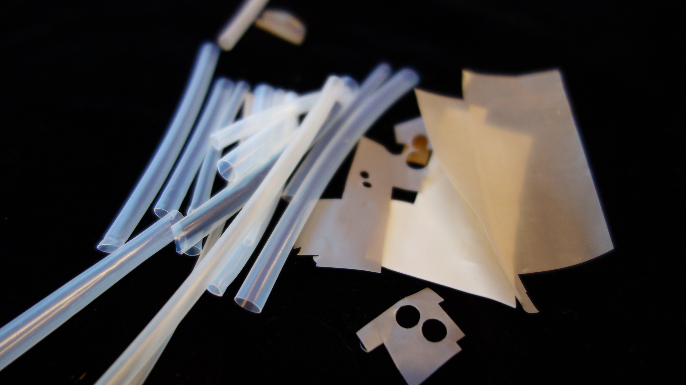 Teflon sheets + Heat shrink teflon tube Teflon sheets for laminating onto adjustment materials and various other uses. Available at MusicMedic. I hardly ever use anything but the two thinnest sizes. Heat shrink telfon tubing is tubing that shrinks when heat is applied. Used as an adjustment material in places like side key activating arms and octave key arms. Various suppliers including MusicMedic.