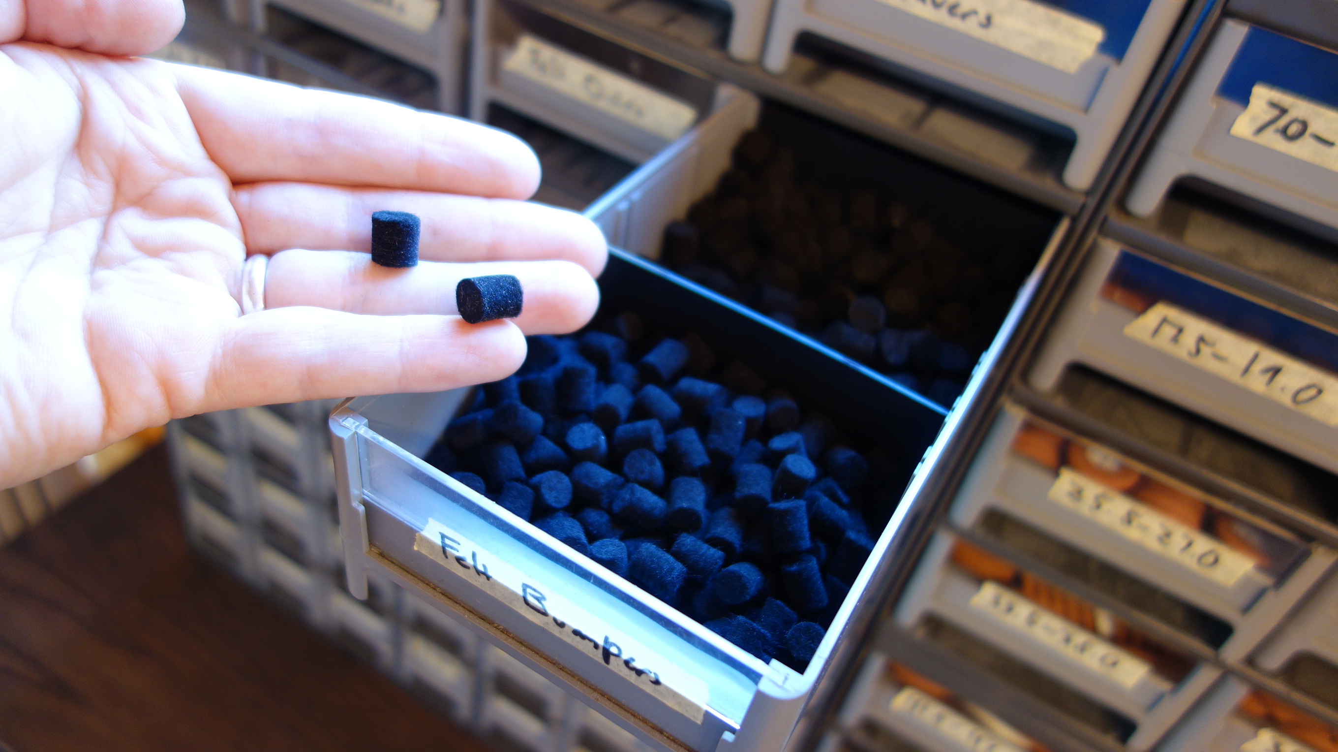 Felt High quality firm felt of various thicknesses for adjustment materials. I get mine in discs from Votaw Tool and sheets from Kraus Music, also available from many other places including Ferree’s Tools and Allied Supply.
