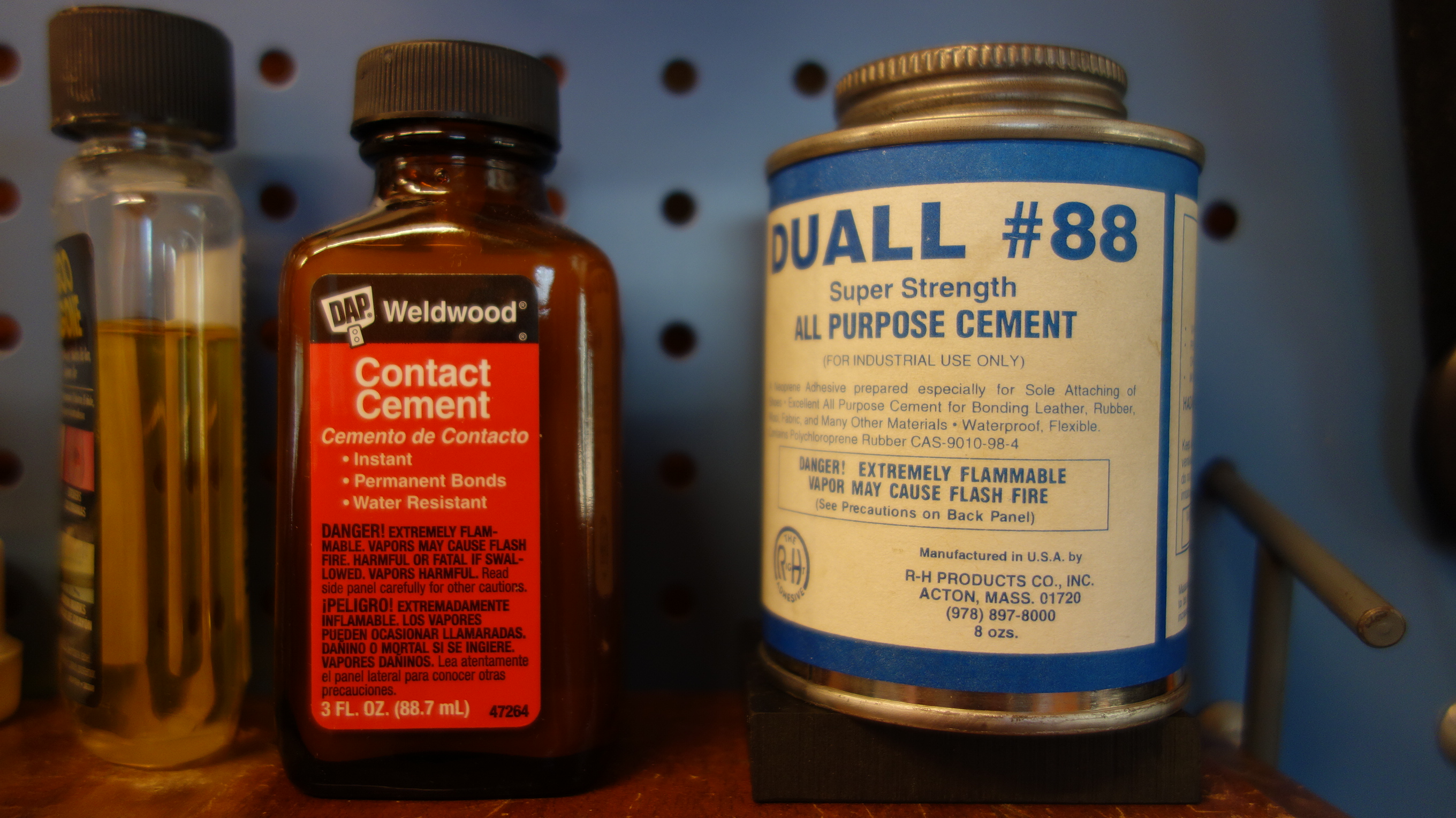 Contact cement Used as an adhesive for neck corks and adjustment materials. Many brands available in many different places including your local hardware store, Allied Supply, Ferree’s Tools, Votaw Tool, and J. L. Smith. I use the Duall contact cement from Votaw Tool. You’ll also want thinner.