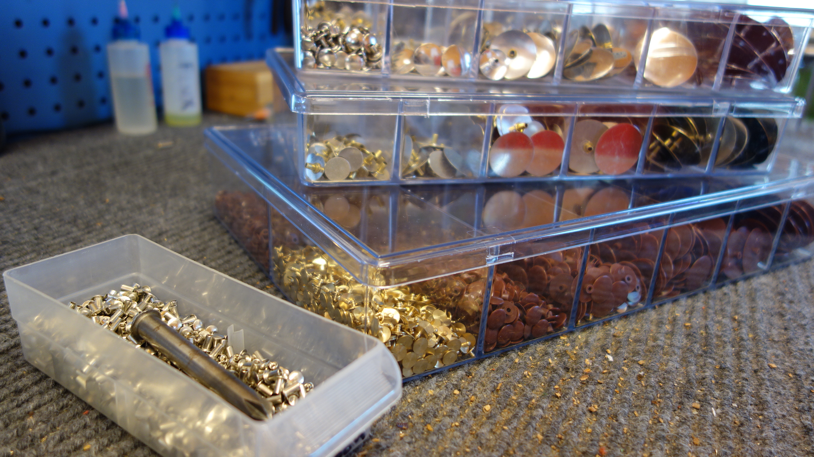Resonators and rivets Unless you buy your pads with resonators pre-installed (which I don’t recommend) you’ll want resonators. Many different types are available. Suppliers include Kraus Music, J. L. Smith, Ferree’s Tools, Allied Supply, and MusicMedic. I get all of mine from Kraus Music except for the heat-stake plastic resonators (which I feel are superior to the press-fit plastic resonators) which come from Ferree’s.