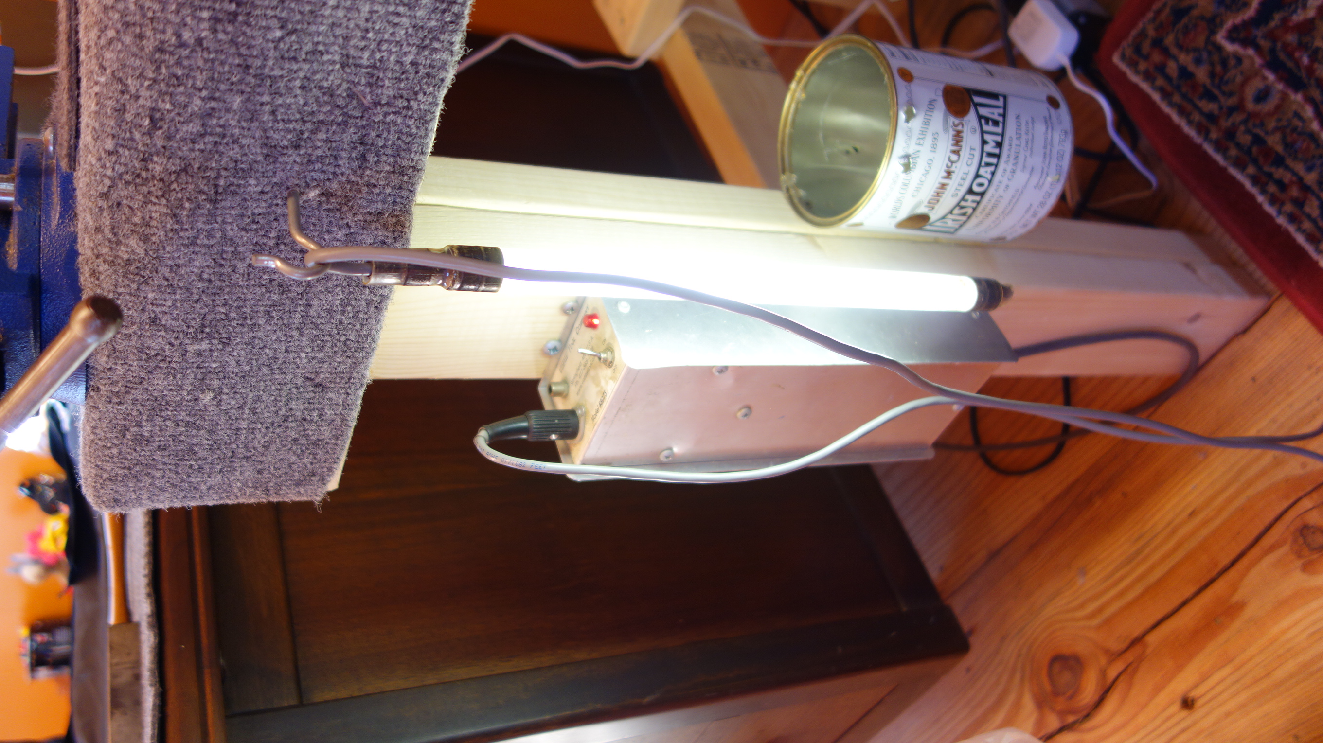 Carpet for bench top Carpet to cover your bench so the instrument you are working on doesn’t get scratched. Rubber backed and tightly woven is what you want- probably indoor/outdoor stuff. I semi-permanently affix one layer to my benchtop using a staple gun and then cut another piece to lay on top that I can shake out and replace in case anything gets spilled or it gets burned. Available at your local carpet store or hardware store. Just make sure its soft enough to feel ok on your skin- your elbows will be resting on it.
