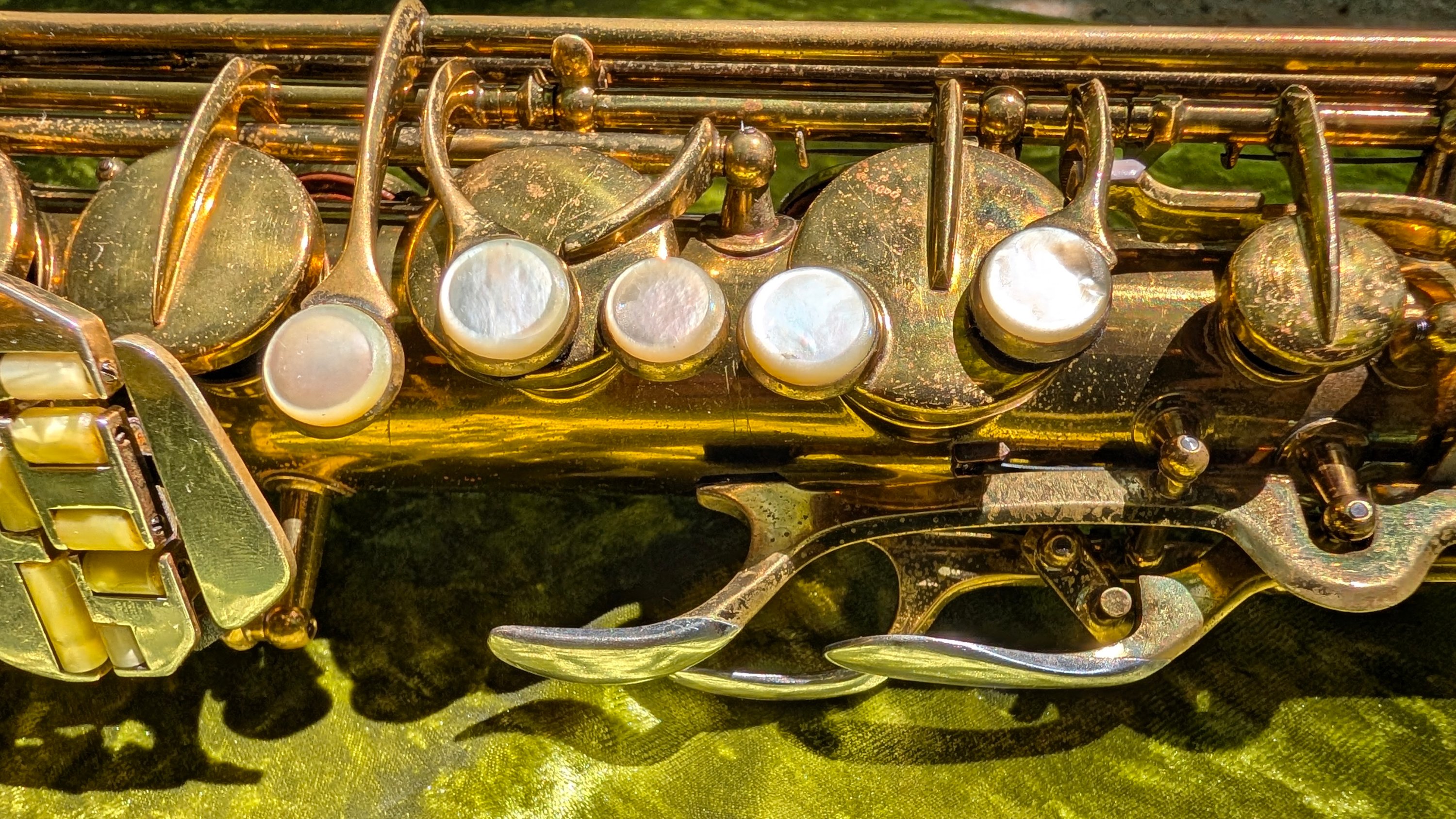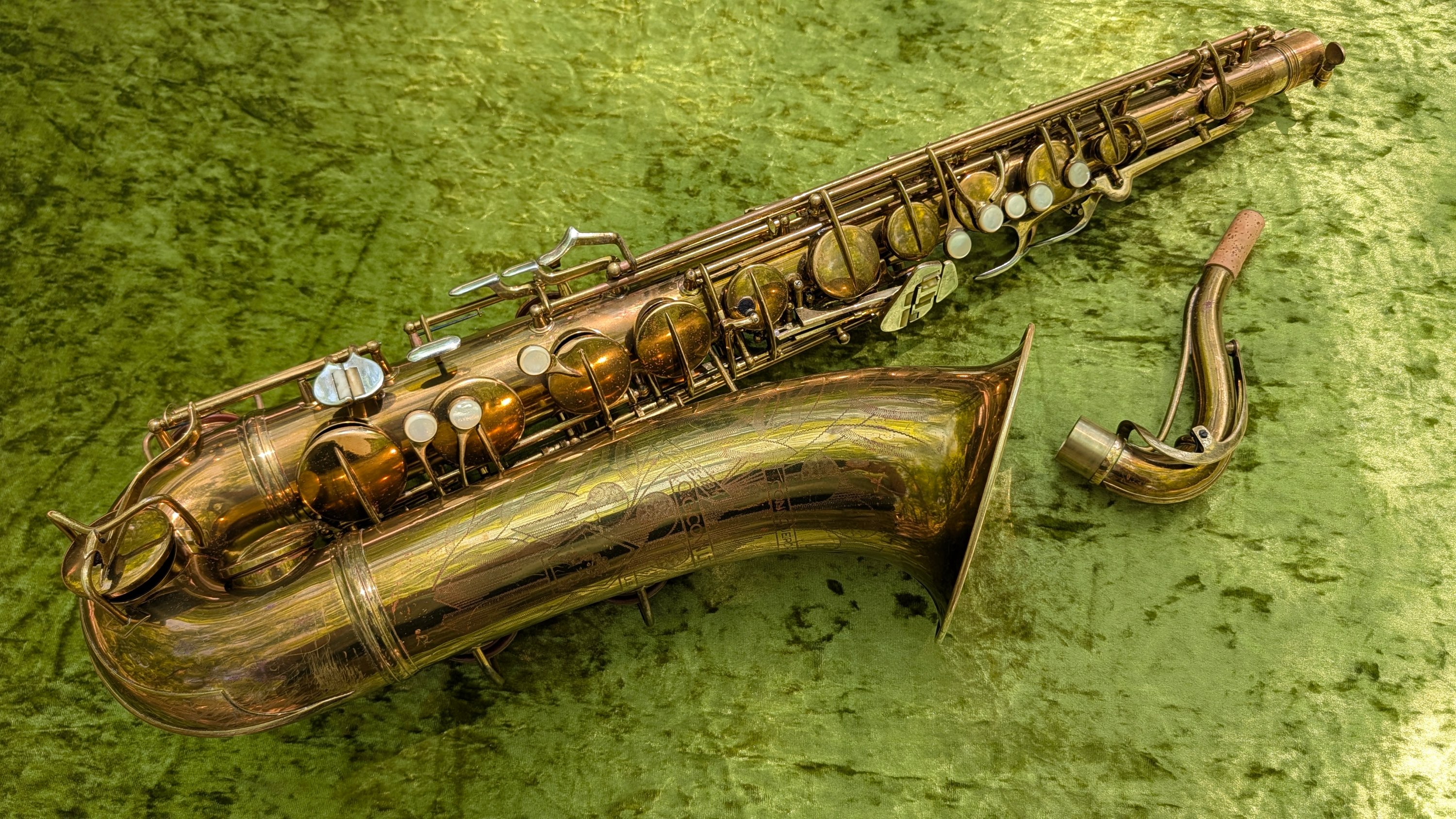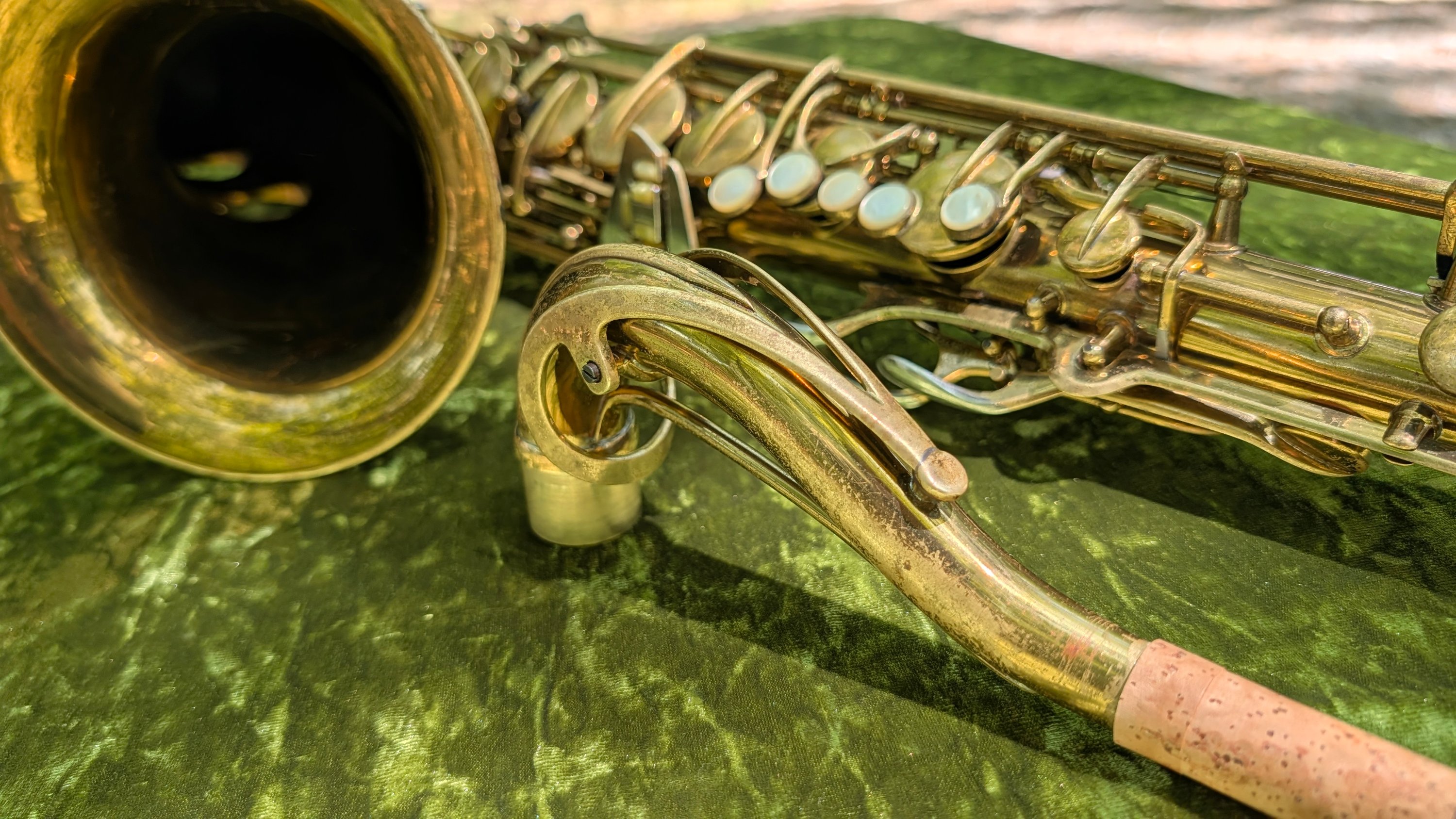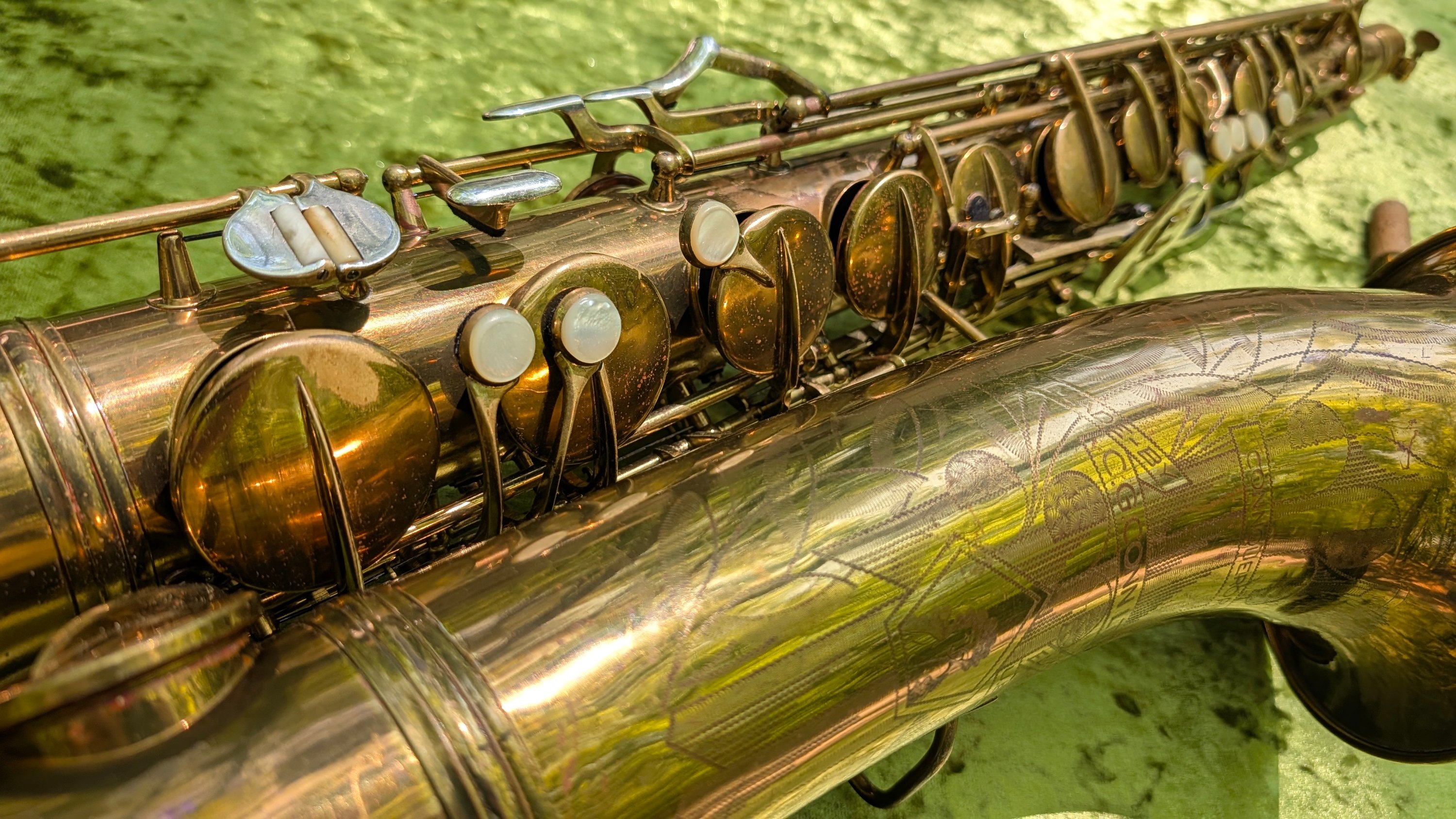This tenor arrived to me as something I had purchased very cheaply on a bit of a lark. It had been disassembled since the ’80s, was probably refinished, and it was not completely certain that all the parts were there.