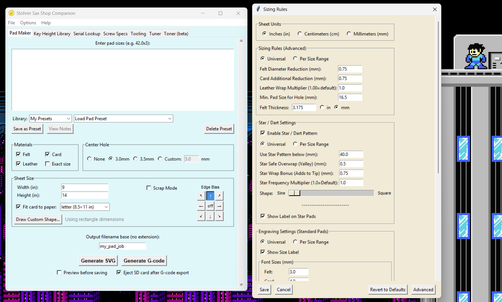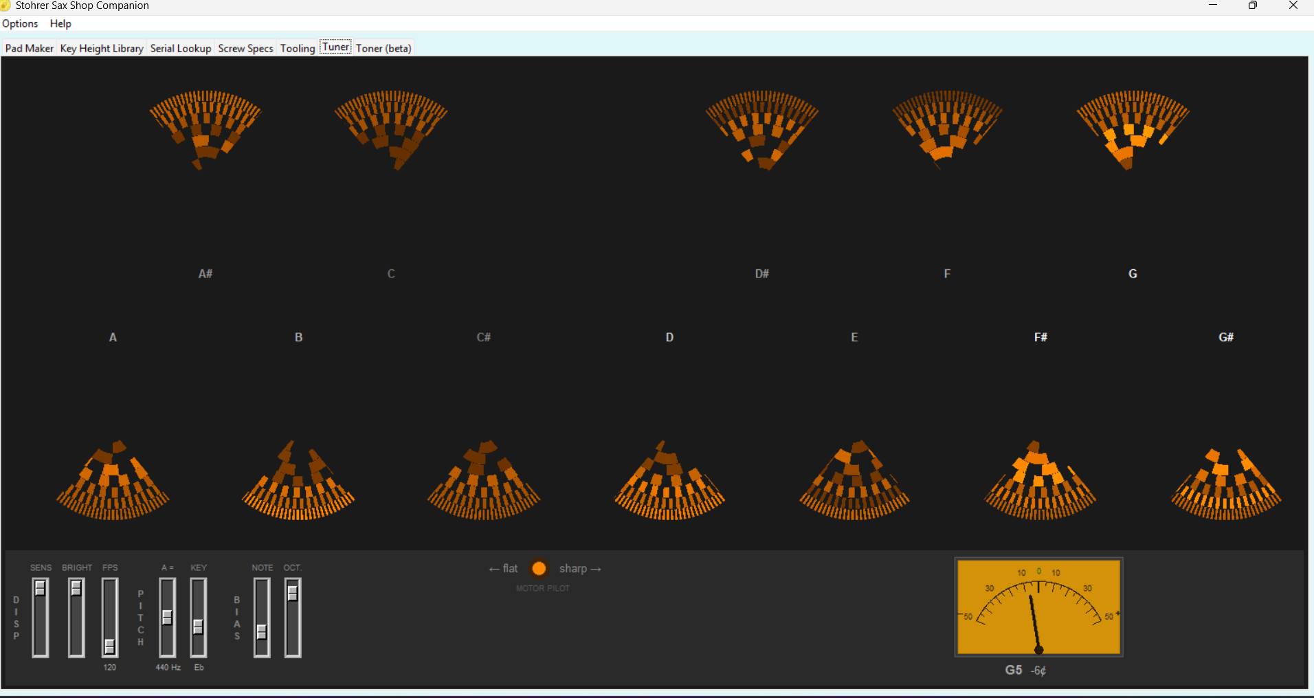 A free, open-source desktop app for saxophone repair shops and saxophonists that I have built with Claude Code. Generates laser-cutting files for the Phil Noy padmaking method, provides reference databases for key heights, serial numbers, and screw specifications, includes tooling generation for pad-making die inserts and holders, a 12-wheel chromatic strobe tuner, and a harmonic tone analyzer for studying your sound. Download links at bottom of the page.