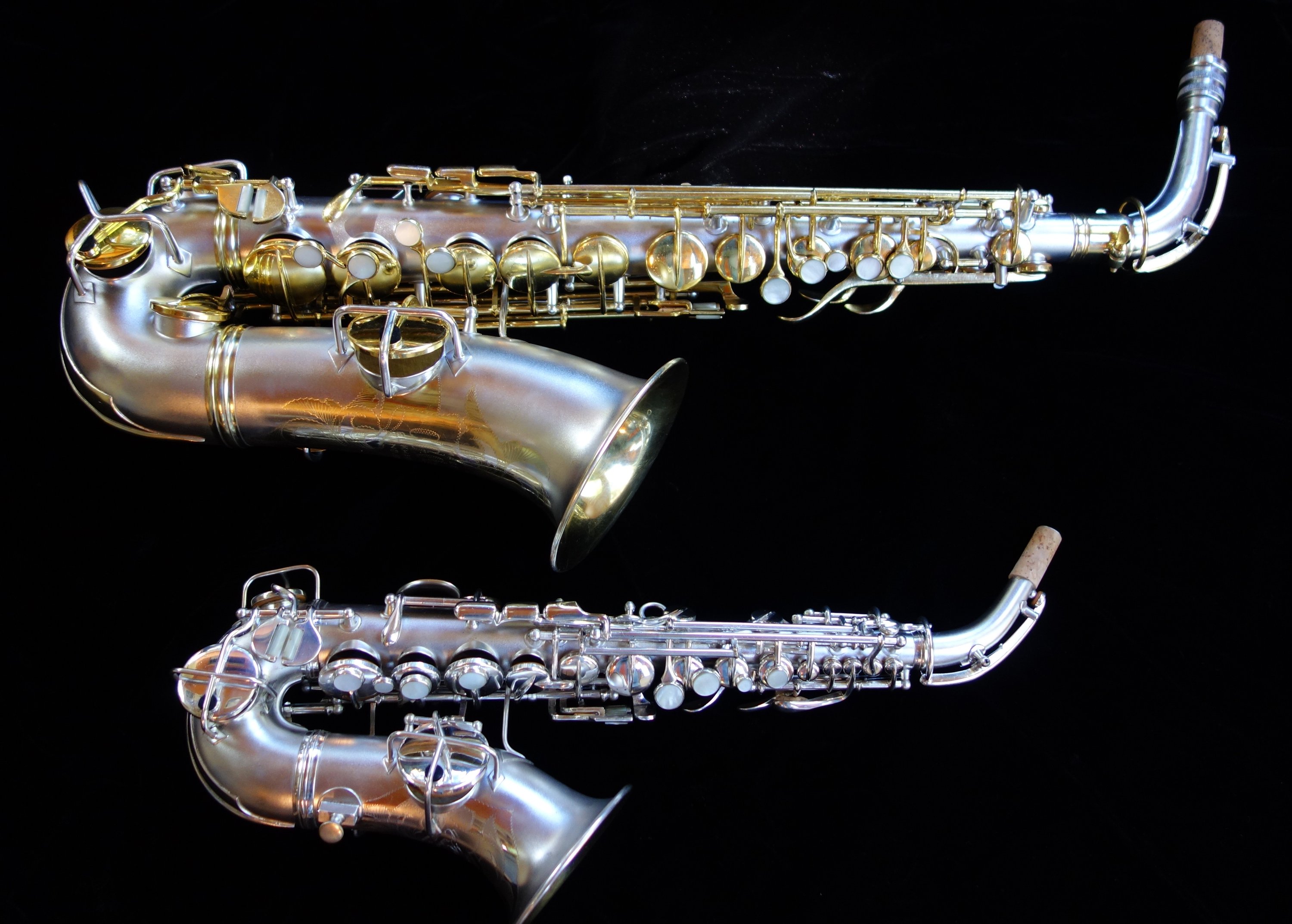 SaxPics writeup a video I made on Conn curved sopranos that shows this soprano in “before” condition a video I made a long time ago on a different New Wonder II alto And here is a “before” photo of each horn.