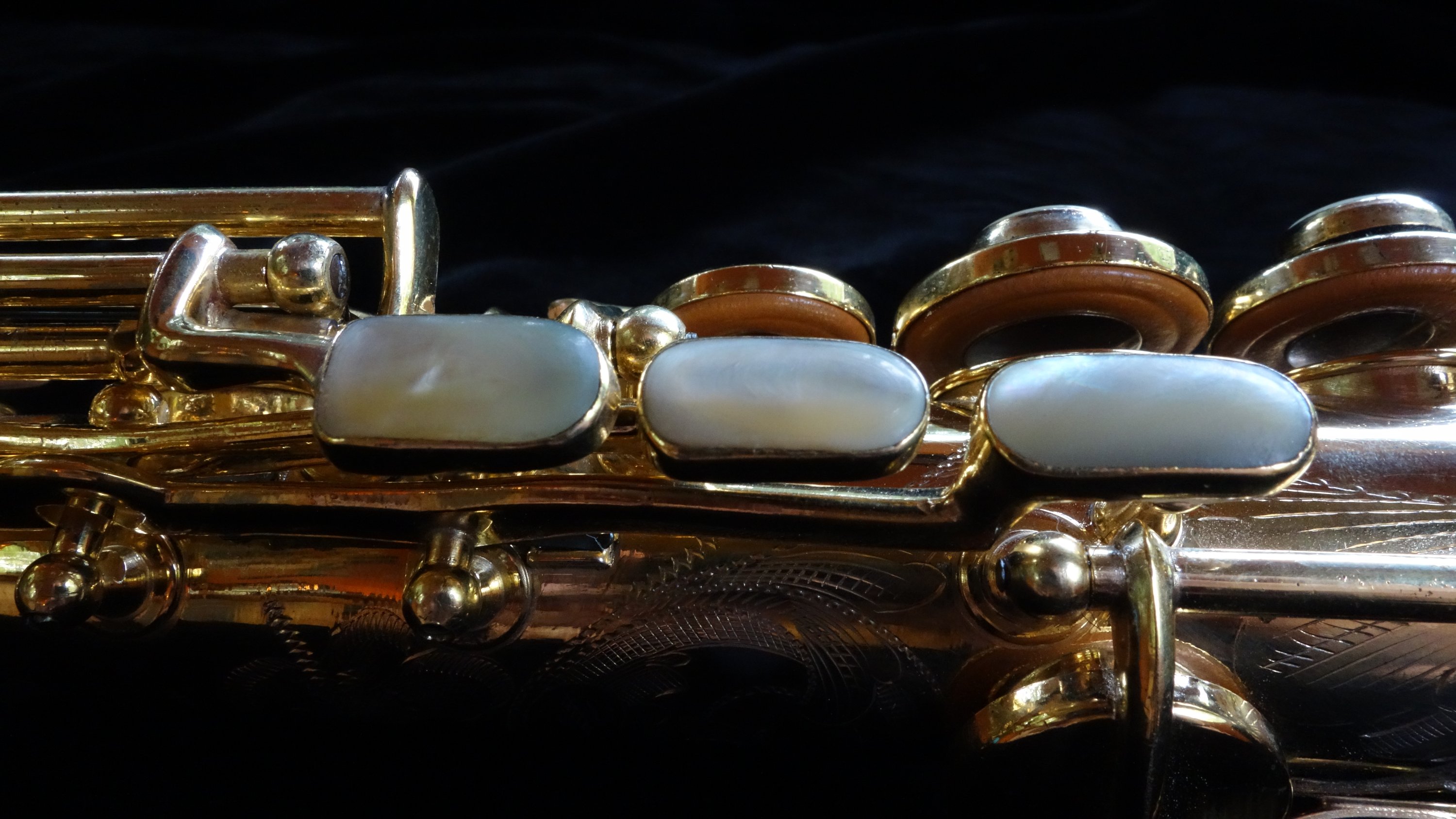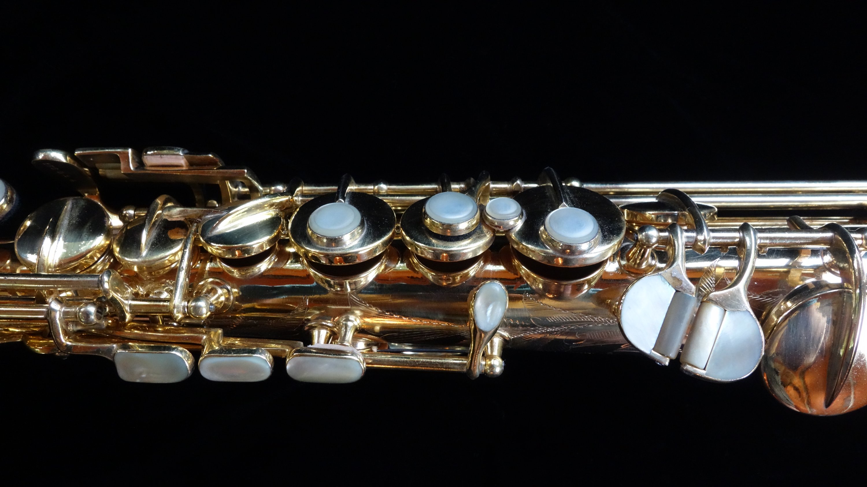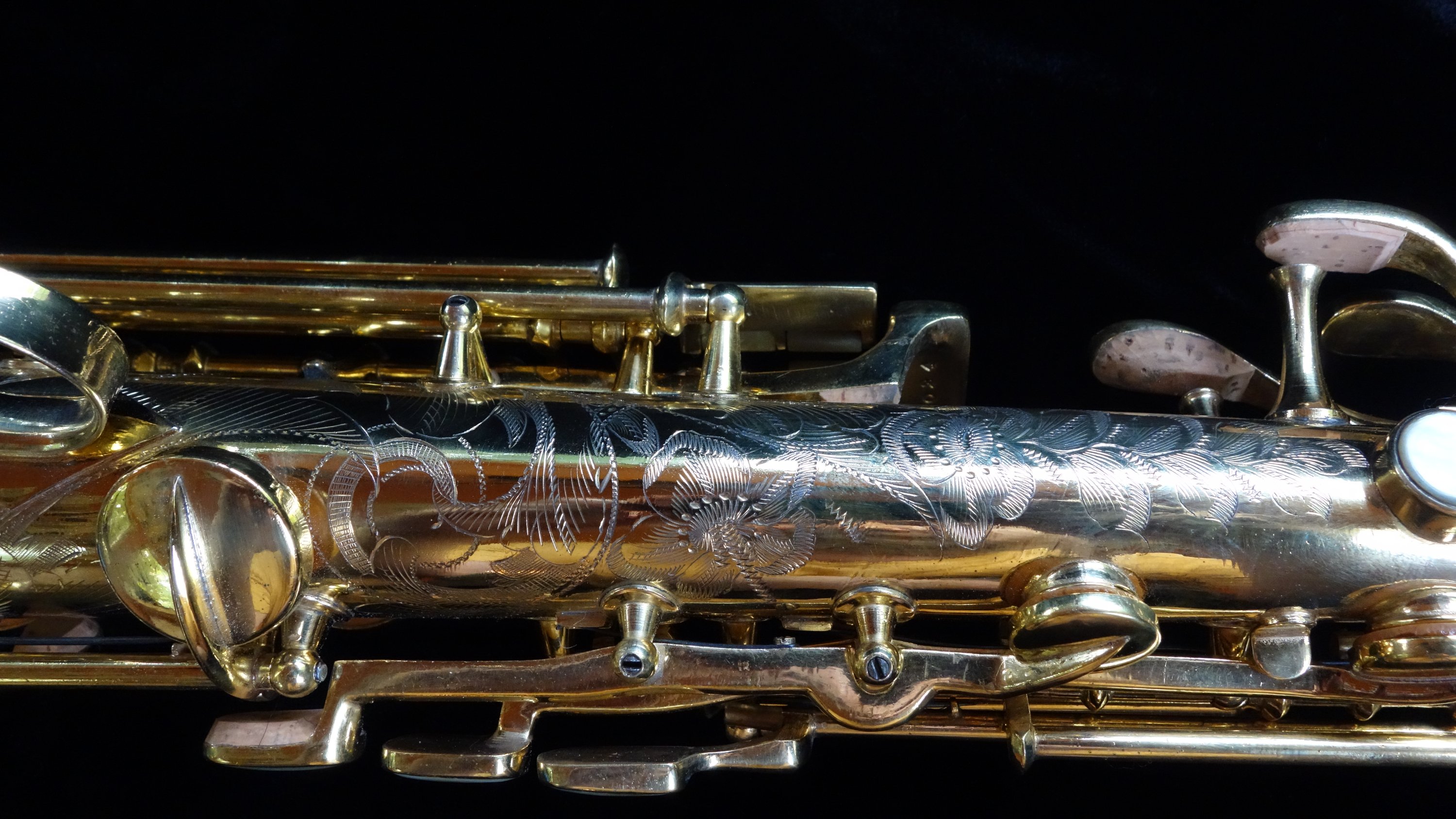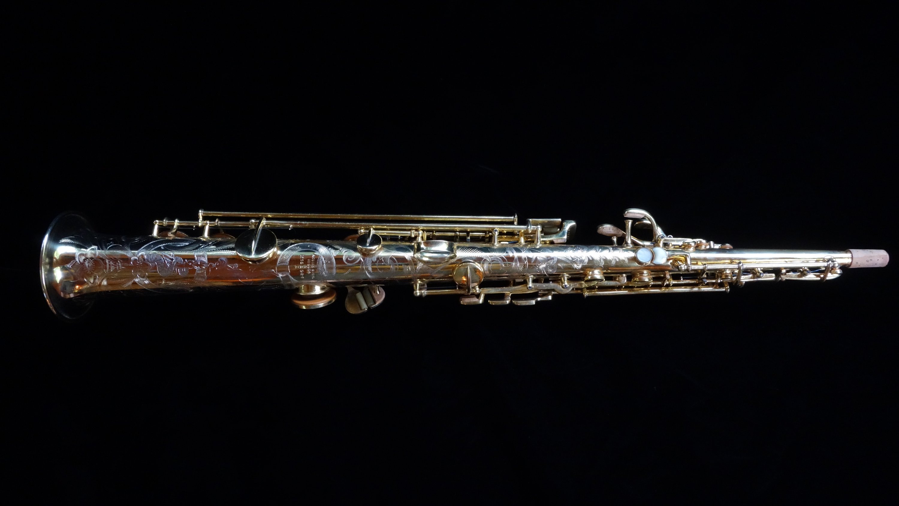 The saxophone itself plays quite well with a round, powerful dark sound and is easily a stand-out example of its type, the Conn New Wonder Series II. Already one of my favorite vintage sopranos to play, this one is also a work of art and a fine example of the best musical instrument craftsmanship in the United States in the 1920s.