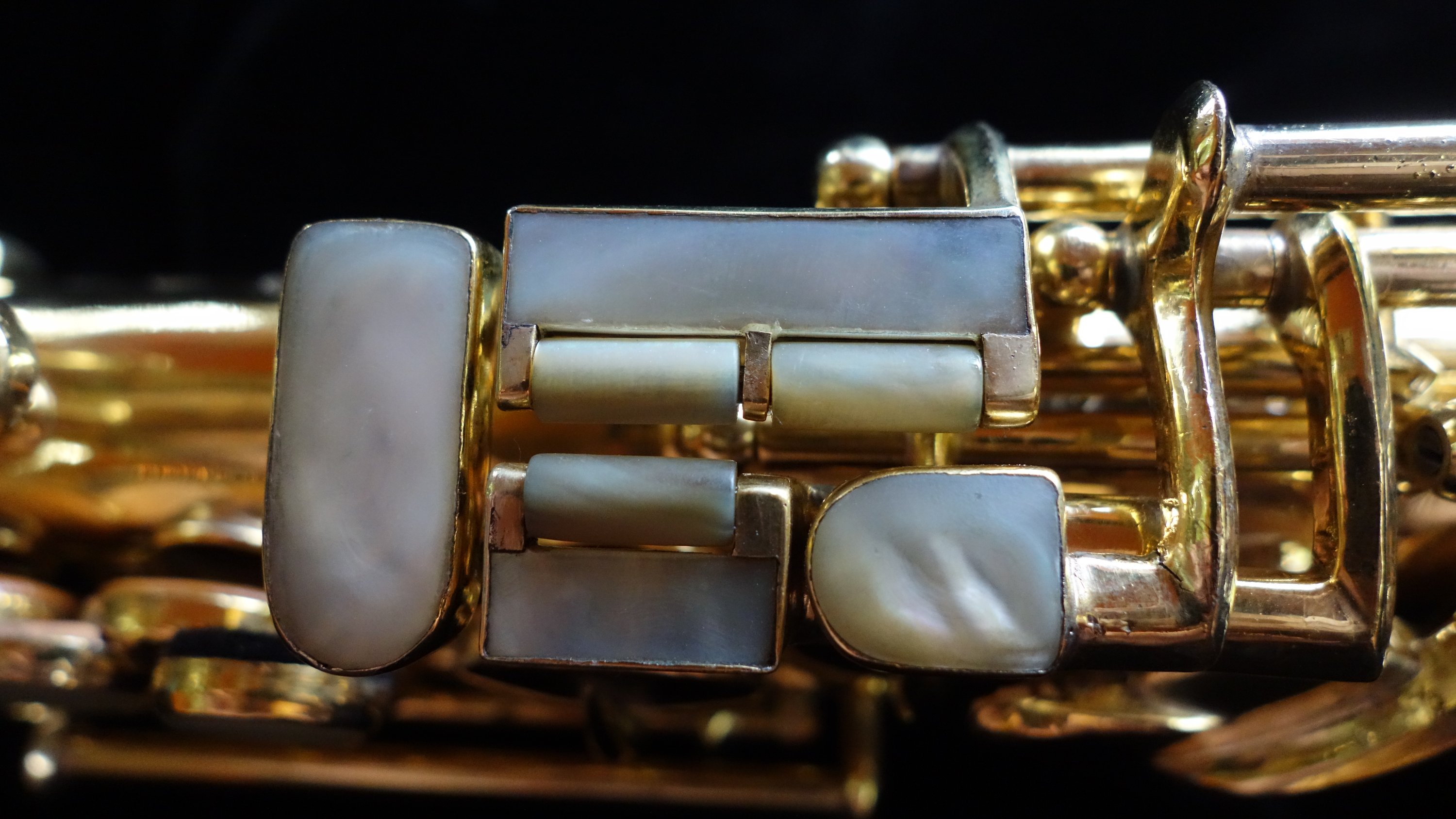 I straightened the body on this horn and overhauled it with flat metal resonators in conservative sizing and corrected some strange springwork that had been done at some point in the past. I also tried to be a bit traditional when it came to adjustment materials and so forth, wanting my work to take a far back seat to the natural beauty of the saxophone itself.
