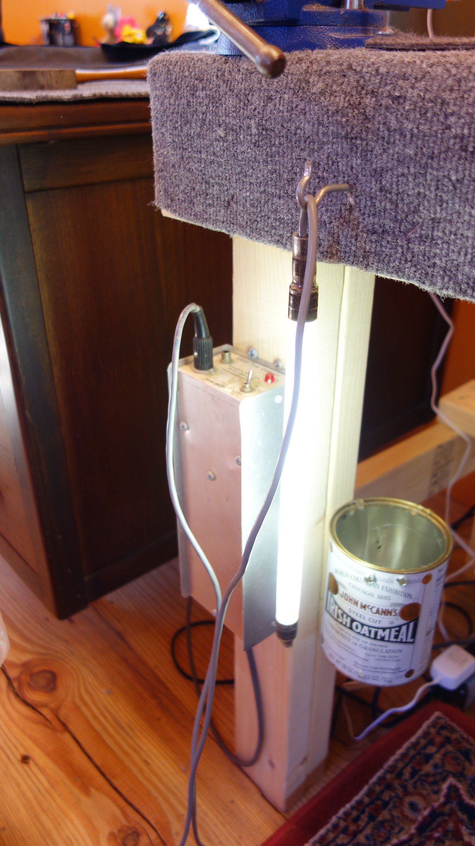 Carpet for bench top Carpet to cover your bench so the instrument you are working on doesn’t get scratched. Rubber backed and tightly woven is what you want- probably indoor/outdoor stuff. I semi-permanently affix one layer to my benchtop using a staple gun and then cut another piece to lay on top that I can shake out and replace in case anything gets spilled or it gets burned. Available at your local carpet store or hardware store. Just make sure its soft enough to feel ok on your skin- your elbows will be resting on it.